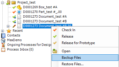 - Mark an object and select Backup Files from the right click menu