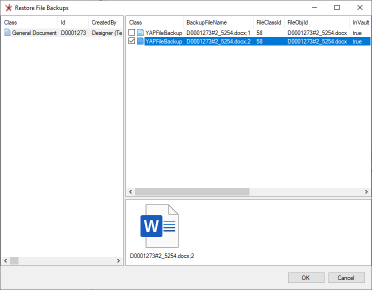 With the Backup Files functionality it's possible to perform a backup of files linked to 'In Work' documents.