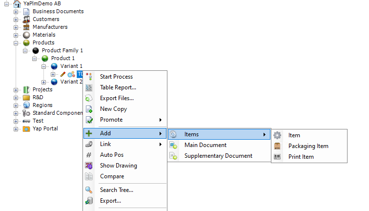- Mark a Folder or an Item and select Add - Items - Item from the right click menu