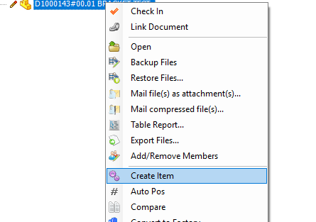A new Item is now created based on the CAD Model. There are settings which controls what attributes shall be copied from the CAD model to the Item