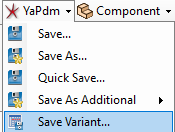 - Select YaPlm-> Save Variant... from the integration menu.