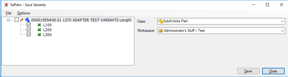 For each configuration saved in the Part Factory file a variant can automatically be generated. Each variant has its own file and only consists of one configuration.