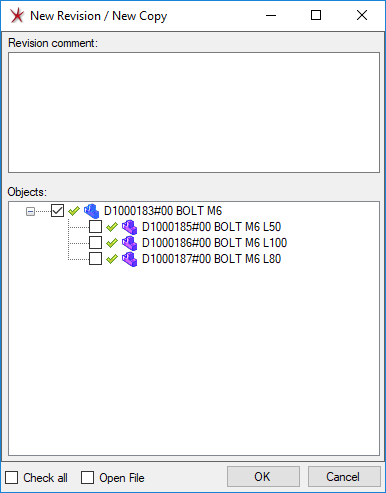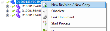 - Select an object of class PartFactory and select New Revision / New Copy from the right click menu